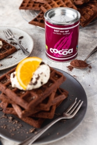 Ist es ein Frühstück? Ist es ein Dessert? Ganz egal, denn das Rezept für diese saftigen Schokowaffeln mit Orangen Cheesecake Creme ist einfach Soulfood pur. Der Clou: Der Waffelteig wird mit dem BEET me up! Edelkakao zubereitet und erhält so eine herrlich-wärmende Würze.