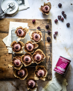 Superfluffige Rote-Bete-Brombeer-Muffins, verfeinert mit der neuesten „BEET me up!“-Kreation von BecksCocoa. Zur Abwechslung haben wir den Muffins eine Füllung aus Brombeermarmelade und eine schöne Krone aus Brombeerglasur verpasst. Ein großes Dankeschön geht an Klara&Ida, die uns diese Muffin-Extravaganz gezaubert haben. Eine der Zutaten im Teig ist unser neues Beet me up! Kakao, der subtile Noten von Roter Bete, Piment, Nelken und Wacholderbeeren enthält. So wild diese Kombination auf den ersten Blick erscheinen mag, die Aromen ergänzen sich hervorragend. Verwenden Sie die neue Mischung zum Backen oder einfach für einen leckeren heißen Kakao an einem gemütlichen Sonntagnachmittag auf der Couch.